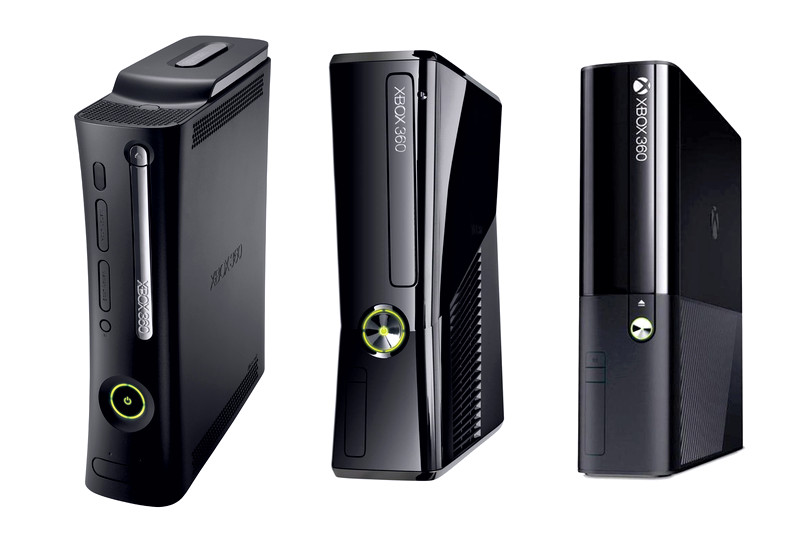 С момента выхода Xbox 360 в 2005 году было выпущено три их разновидности: Xbox 360 Fat, Xbox 360 S (Slim) и Xbox 360 E. Несмотря на то, что их технические характеристики практически одинаковые, они отличаются внешним видом и размерами корпуса.